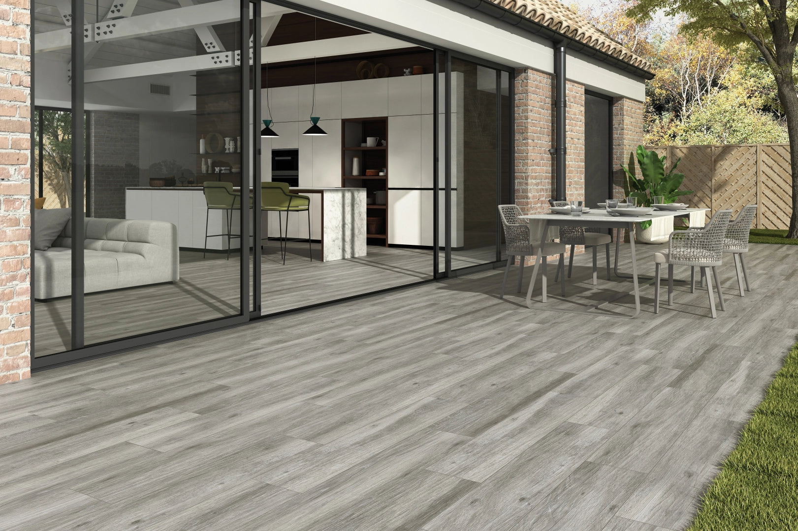 The Emotion Pecan Gris 23.5x120cm porcelain tile offers the perfect blend of natural wood aesthetics and modern practicality. Featuring a soft grey tone with realistic wood grain detailing, this tile brings a contemporary yet warm feel to any space. The subtle grey hue adds a touch of sophistication, making it an ideal choice for modern, minimalist, or industrial-style interiors.