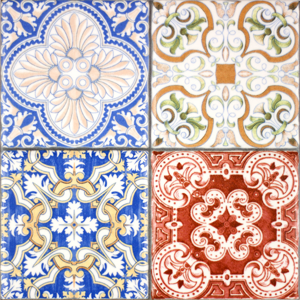 The Aragon Colours Decor Mix 20x20cm tile collection celebrates traditional craftsmanship and vibrant artistry, bringing together an array of ornate patterns and richly hued shades. Each tile in the set features a distinct decorative motif, inspired by heritage ceramics and European design traditions, resulting in a beautifully curated assortment that feels both timeless and eclectic.