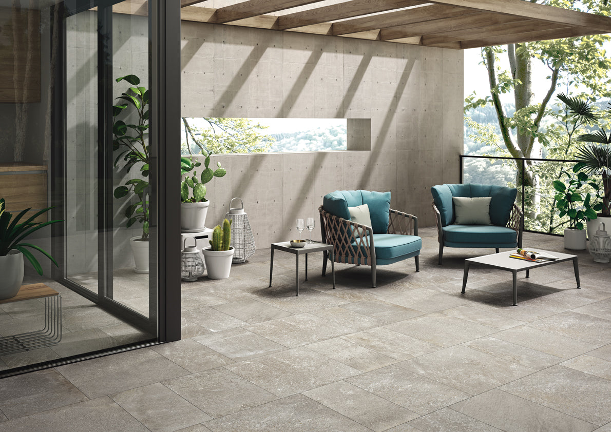 A new material inspired by the sedimentary dolomitic rock from the Limestone family, found in the Appalachian Mountains in North America. A stone with a rugged appeal that combines quartzite and porphyry and recalls the same subtle shades that appear in nature, from grey to brown to black.
