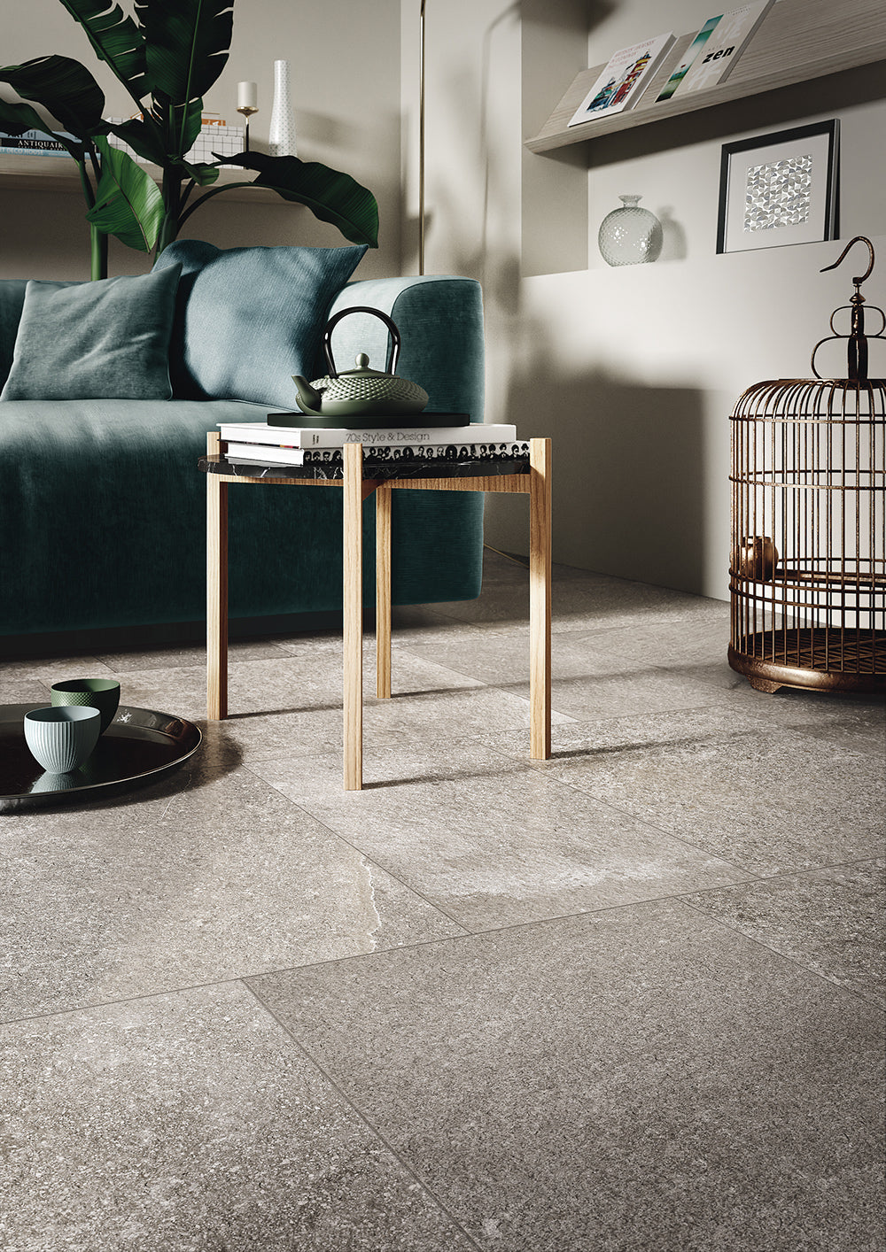 A new material inspired by the sedimentary dolomitic rock from the Limestone family, found in the Appalachian Mountains in North America. A stone with a rugged appeal that combines quartzite and porphyry and recalls the same subtle shades that appear in nature, from grey to brown to black.